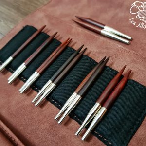 >9 Sizes kim đan từ gỗ tự nhiên Cocobolo thông dụng: 3.5 – 3.75 – 4 – 4.5 – 5 – 5.5 – 6 – 6.5 – 8mm. (Kim dài 13cm, 5″)