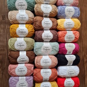 - Dùng len: DROPS Safran 100% Cotton (Made in EU).