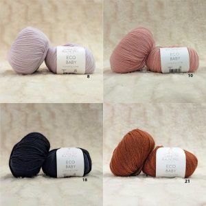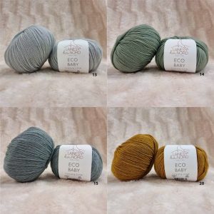 Bảng màu bao gồm các sắc thái mềm mại, bụi bặm và tự nhiên được thiết kế để làm nổi bật sự đơn giản và thanh lịch của loại sợi quý này. Mỗi sắc thái đã được tuyển chọn cẩn thận để hài hòa đẹp mắt với các sắc thái khác, cho phép kết hợp tinh tế hoặc kết hợp táo bạo, giàu trí tưởng tượng. Eco Baby là sự lựa chọn hoàn hảo cho những ai đang tìm kiếm một loại sợi chất lượng cao, hoàn toàn được sản xuất tại Ý, kết hợp các giá trị thủ công với tính bền vững và hiệu suất vượt trội. Một người bạn đồng hành quý giá cho những người đam mê đan lát muốn mọi dự án đều kể một câu chuyện chân thực – câu chuyện về sự chăm sóc, vẻ đẹp và sự tôn trọng. *Đừng quên rằng cách hiển thị màu sắc có thể khác nhau giữa các màn hình và sắc thái cũng có thể khác nhau giữa các bồn tắm màu (Dyelot) (kiểm tra dải của cuộn len).