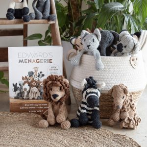 Edward’s Menagerie is a collection of 40 animal soft toy crochet patterns that are suitable for beginners to advanced crocheters. These cute animals with larger-than-life personalities are made using simple crochet techniques and the step-by-step instructions enabling a complete beginner to get hooking straight away. Each animal also has a universal pattern, so you can change your hook and yarn to create four different sizes, from small to giant!