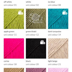 DROPS Cotton Light là loại sợi cotton mềm mại, được làm từ 50% cotton và 50% polyester micro. Sợi được se từ nhiều sợi nhỏ, mang lại độ đều và mượt cho mũi đan. Các sợi micro mảnh hơn cả tơ lụa và không hút ẩm; khi kết hợp với cotton, tạo nên loại sợi thích hợp cho cả trang phục mùa hè lẫn mùa đông: thoáng khí, giữ dáng tốt và bền chắc.